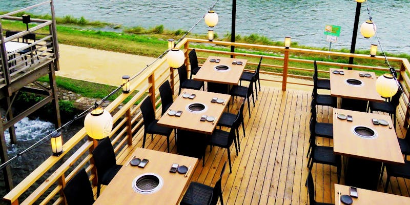 木屋町二条下ル辺りから五条木屋町までの間で, 店の裏側が鴨川に面しているお店の中には, 5月1日~9月30日の期間中に川床を出すところがあります。